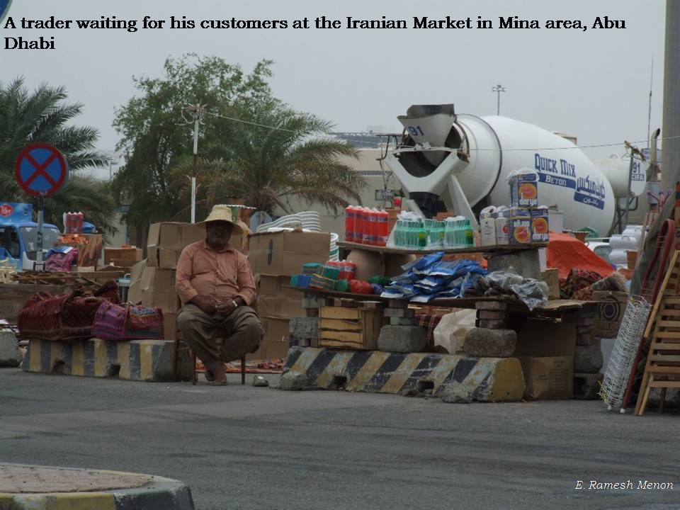 A vendor at the local Iranian Market (Mina Market) Abu Dhabi waiting for customers