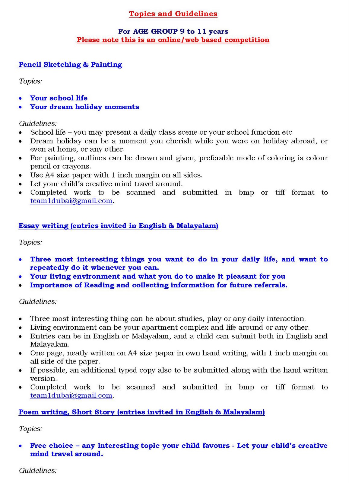· Entries can be in English or Malayalam, and a child can submit both in English and Malayalam.