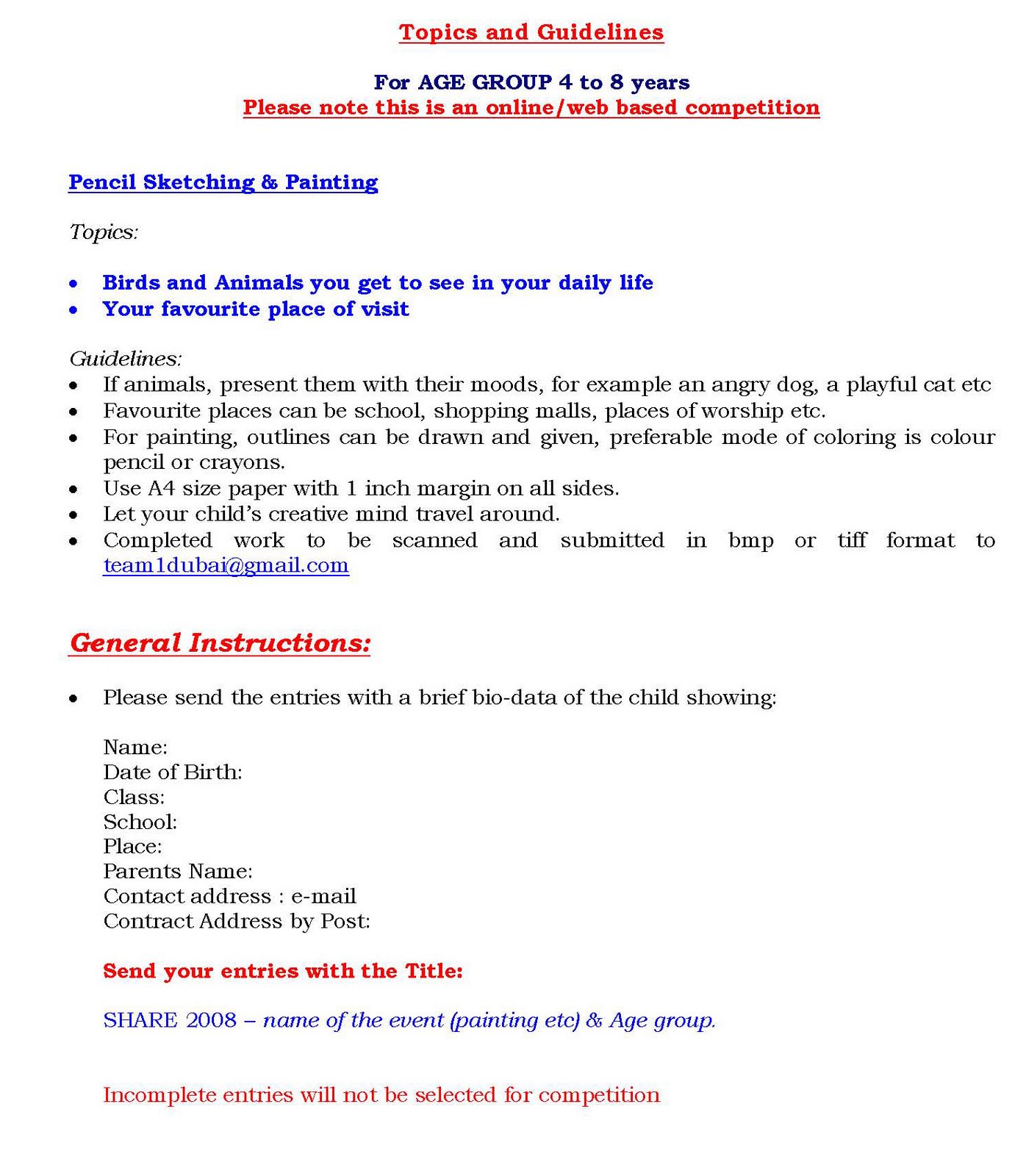 · Completed work to be scanned and submitted in bmp or tiff format to team1dubai@gmail.com.