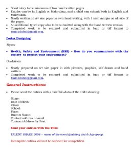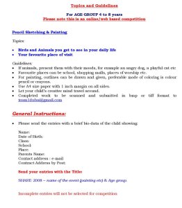 So, why waste time? See what your child has in store in his little mind. From our side, we will regularly update both the websites with guidance notes and assistance material to develop these talents. All the entries received will be posted online for the whole world to notice your child’s creative talent.