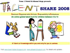 With this view in mind, we present to you on behalf of Team 1 Dubai and Athaani blogspots, the first ever on-line talent hunt – SHARE 2008.